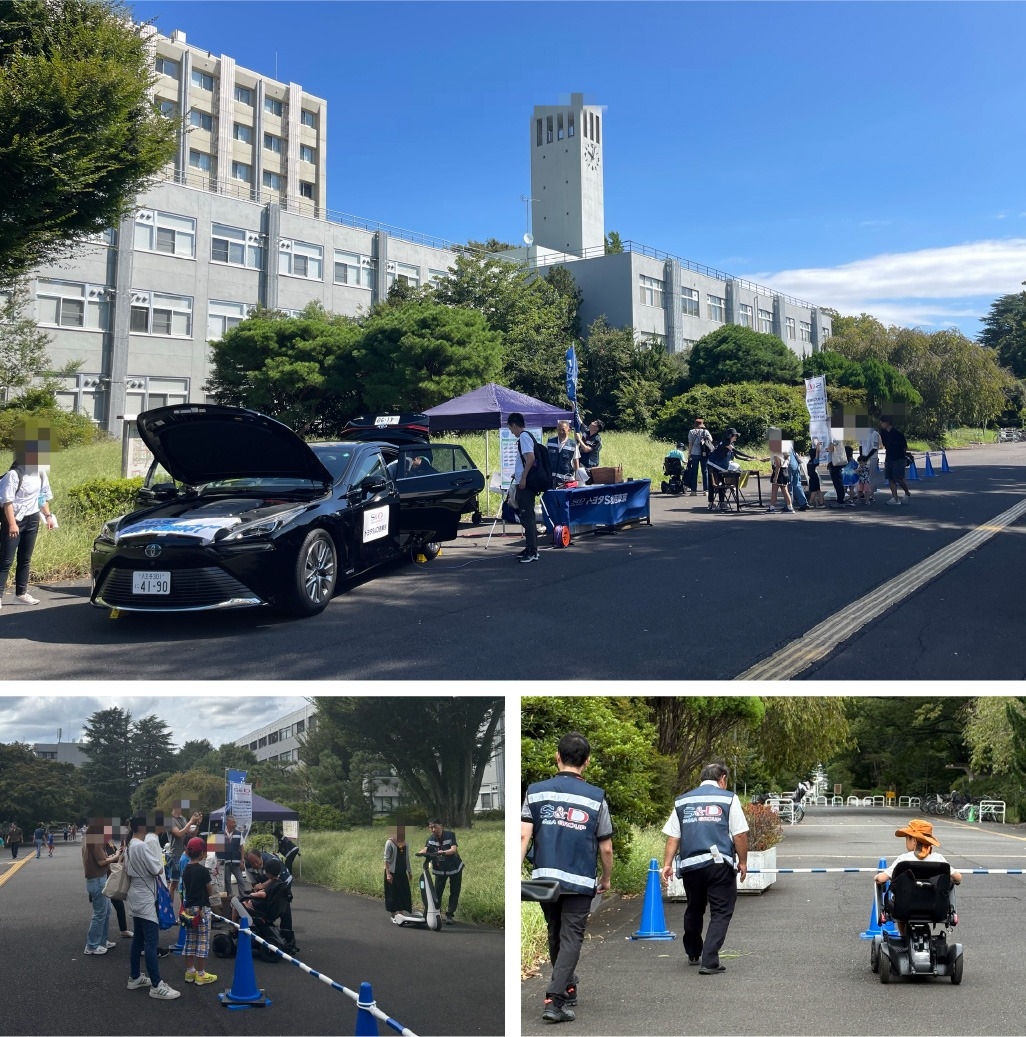 また、小型モビリティ 「WHILL」「C+walk」 の体験乗車も実施し、子どもからご年配の方、さらには当大学の学生まで、幅広い世代にご体験いただきました。操作のしやすさや乗り心地に驚く声も多く、「買い物や通学に使ってみたい」といった感想もいただきました。見るだけでなく、実際に試乗することで、その実用性をより身近に感じていただける機会となりました。